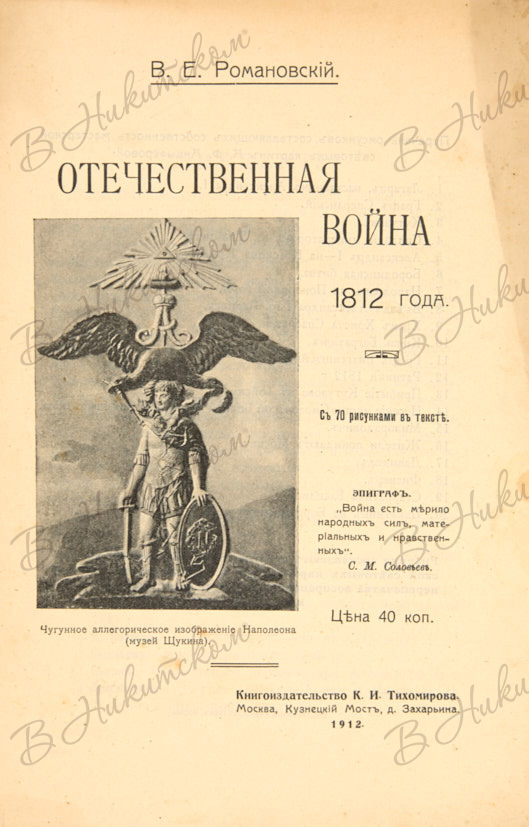 Романовский, В.Е. Отечественная война 1812 года. [Исторический очерк]. М.: К.И. Тихомиров, 1912.