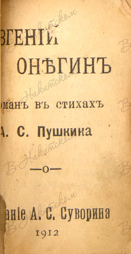 [Миниатюрное издание]. Пушкин, А.С. Евгений Онегин. Роман в стихах А.С. Пушкина. СПб.: Изд. А.С. Суворина, 1912.