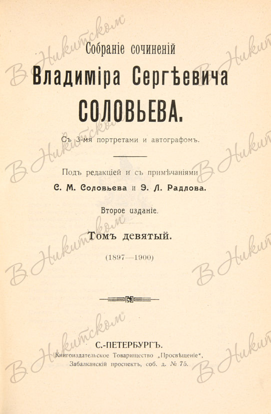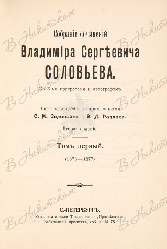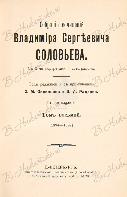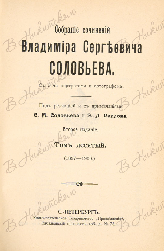 Соловьев, В.С. Собрание сочинений Владимира Сергеевича Соловьева. В 10 т. Т.1-10. СПб.: Просвещение, [1911-1914].