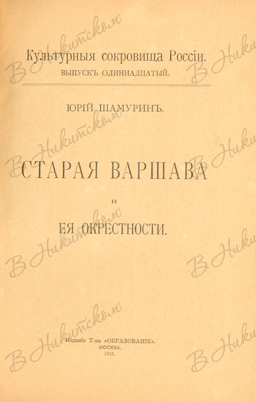 Шамурин, Ю.И. Старая Варшава и ее окрестности. М.: Образование, 1915.