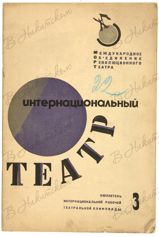 5. Интернациональный театр. № 3 за 1933 г. М.: Тип. газеты «Правда», 47, [1] с, ил. 26,2 х 17,5 см. В иллюстрированной издательской обложке. Небольшое замятие нижнего уголка блока. Незначительные загрязнения обложки. Блок чистый. Тираж 2000 экз.
