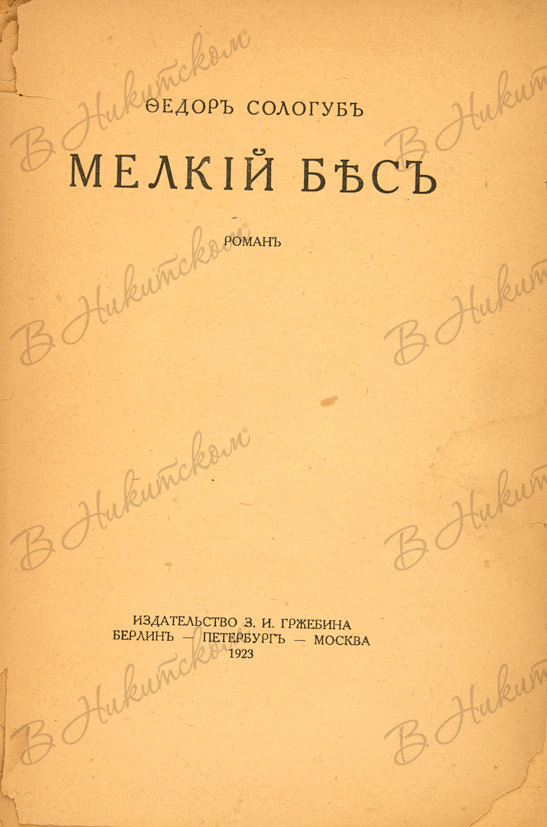 Сологуб, Ф. Мелкий бес. Роман. Берлин; Пб.; М.: Издательство З.И. Гржебина, 1923.