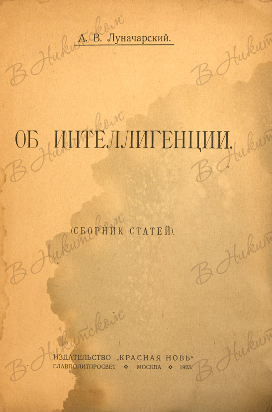 Луначарский, А.В. Об интеллигенции. (Сборник статей). М.: Издательство «Красная новь», 1923.