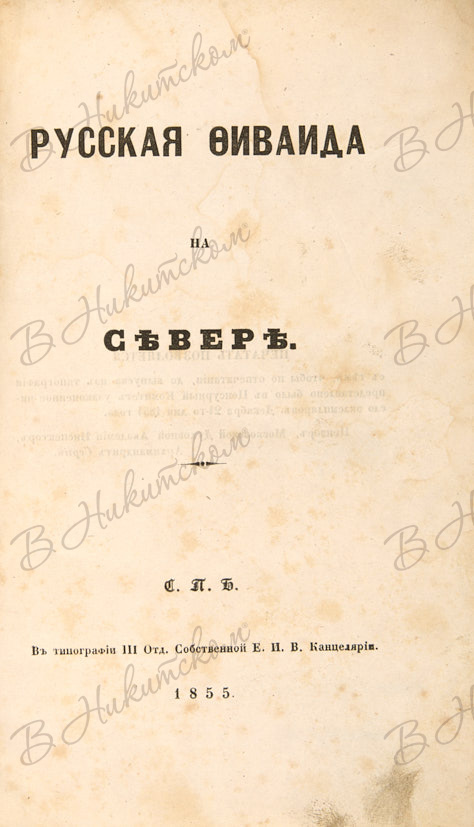 Муравьев, А.Н. Русская Фиваида на Севере. СПб.: Тип. III Отд. Cобств. Е.И.В. канцелярии, 1855.