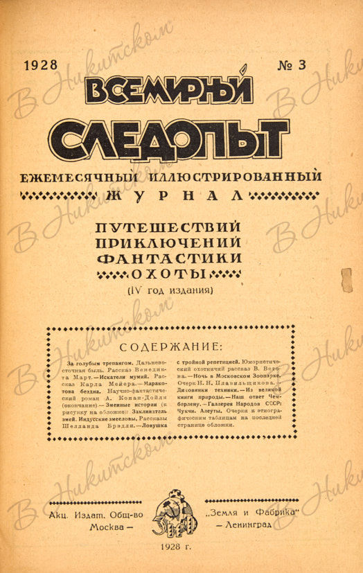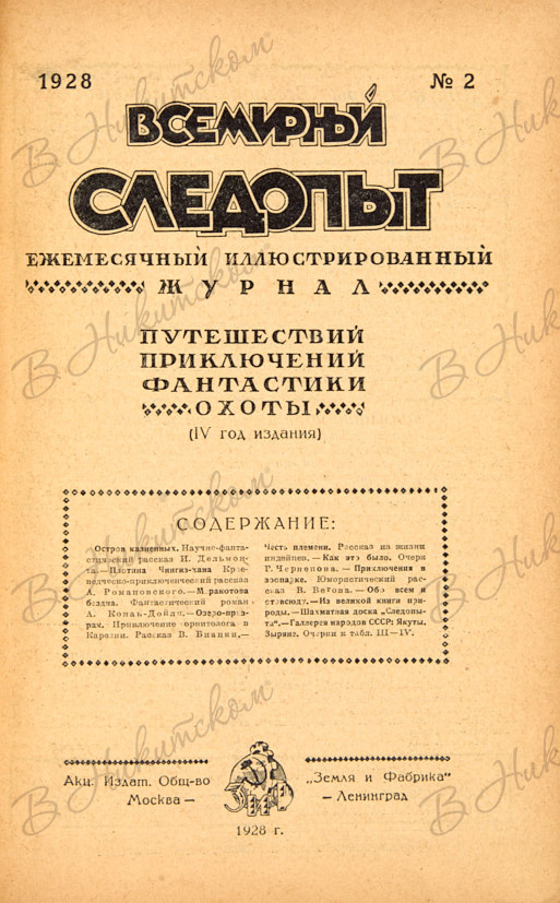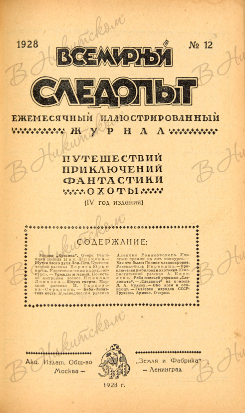 [Годовой комплект]. Всемирный следопыт. Ежемесячный иллюстрированный журнал путешествий, приключений, фантастики, охоты. № 1-12. М.- Л., Изд. ЗИФ, 1928.
