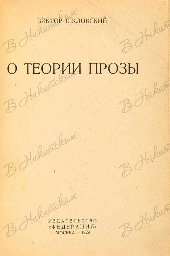 Шкловский, В. О теории прозы. М.: Издательство «Федерация», 1929.