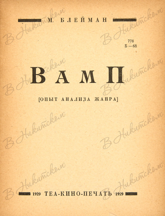 Блейман, М. Вамп. Л.: Теакинопечать, 1929.