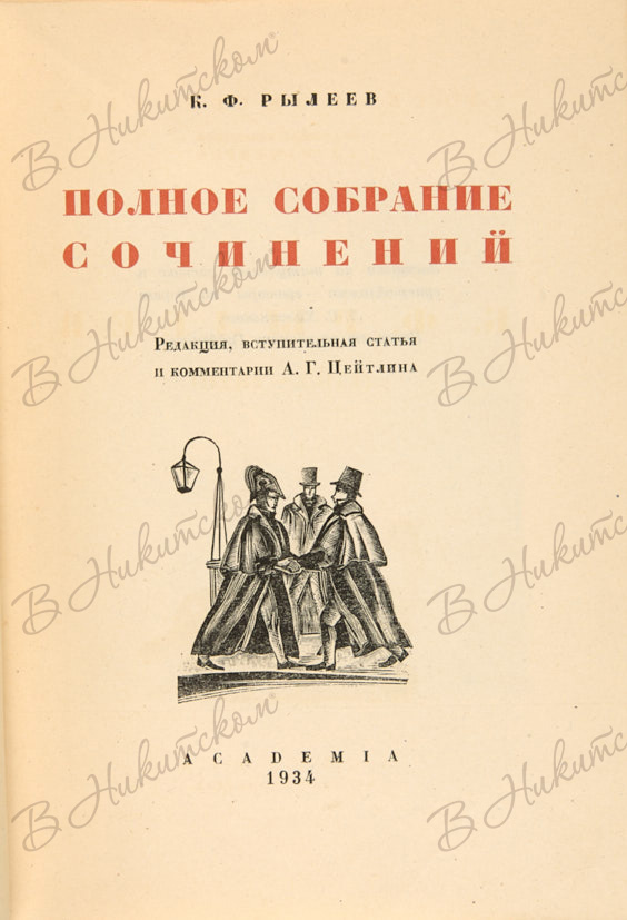 Рылеев, К.Ф. Полное собрание сочинений / ред., вступ. ст. и коммент. А.Г. Цейтлина. М.; Л.: Academia, 1934.