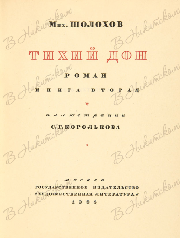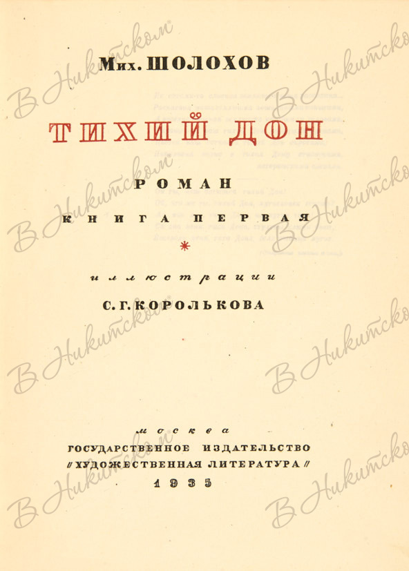 Шолохов, М. Тихий Дон. Роман. [В 3 кн. ]Кн. 1-2 / илл. С.Г. Королькова. М.: ГИХЛ, 1935-1936.