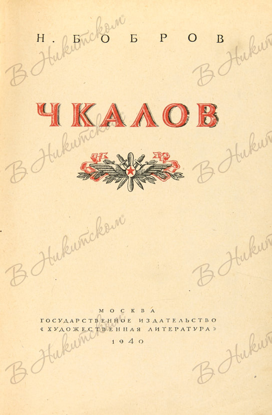 Бобров, Н. Чкалов. М.: «Художественная литература», 1940.