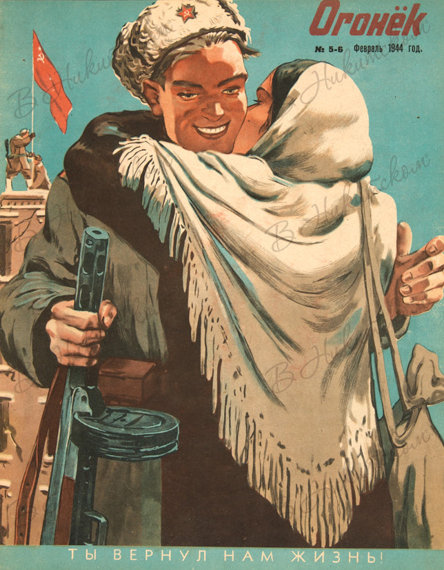 Огонек. № 1-10, 14-16, 19-21, 27-29, 32-25, 38-43, 45, 47 за 1944 г.; № 6-7, 15-16, 36, 41, 44, 48-50 за 1945 г. М.: Тип. Газеты «Правда», 1944-1945.