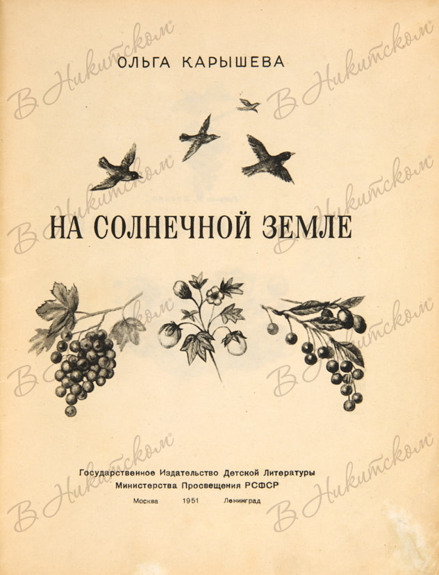 Карышева, О. На солнечной земле / рис. Я. Когана. М.; Л.: ДЕТГИЗ, 1951.