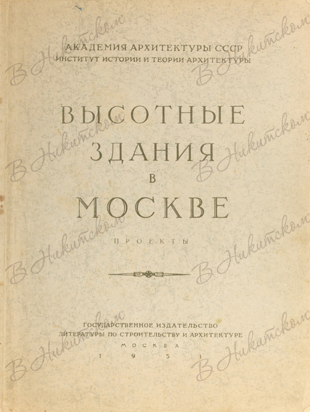 [Автографы архитекторов Н.П.Былинкина и Н.Н. Стоянова]. Высотные здания в Москве. Проекты. М.: Гос. издат. литературы по строительству и архитектуре, 1951.