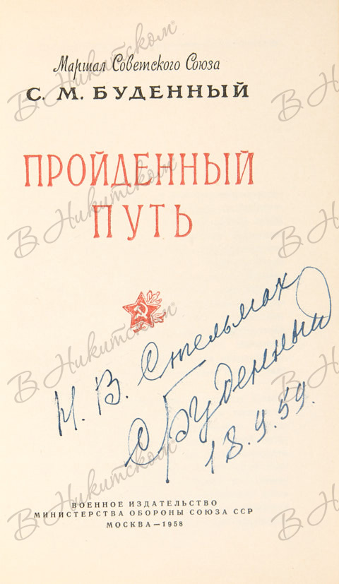 Буденный, С.М. [Автограф]. Пройденный путь. М.: Воениздат Минобороны СССР, 1959.