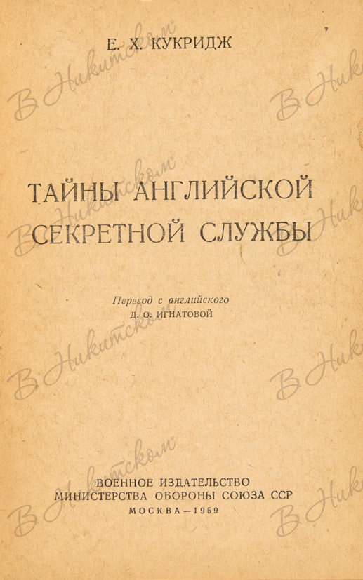 Кукридж, E.X. Тайны английской секретной службы. М.: Воениздат, 1959.