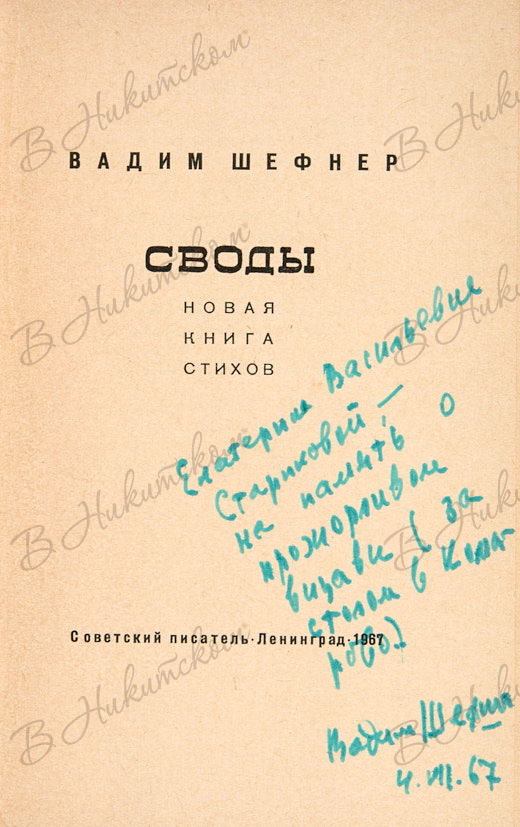Шефнер, В. [Автограф]. Своды. Л.: Советский писатель, 1967.