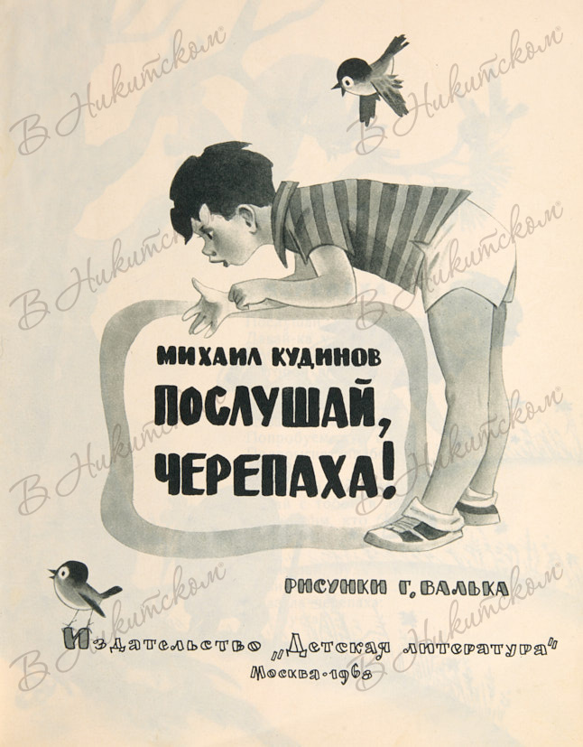 Кудинов, М. Послушай, черепаха! / рис. Г. Валька. М.: «Детская литература», 1968.