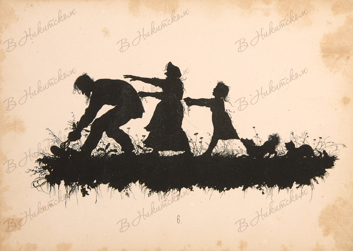 Народная сказка о Репке. Силуэты Елиз. Бем. СПб., 1881.