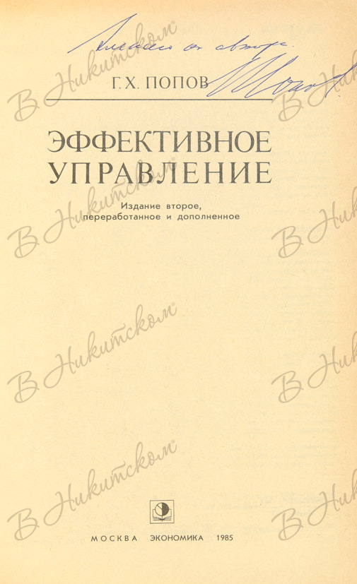 Попов, Г.Х. [Автограф]. Эффективное управление. Издание 2-е, перераб. и доп. М.: «Экономика», 1985.