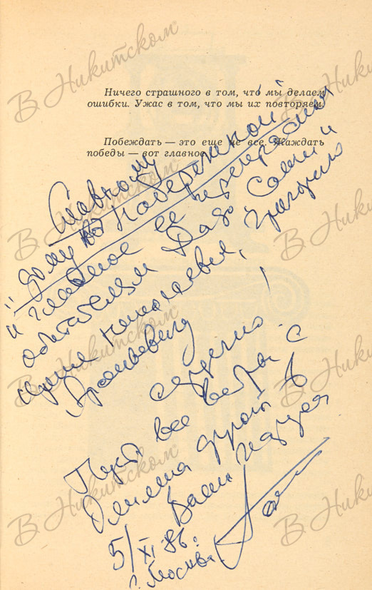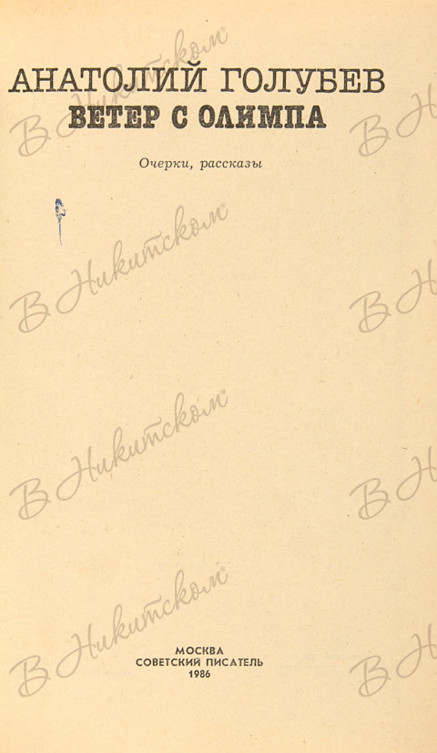 Голубев, А. [Автограф]. Ветер с Олимпа. Очерки рассказы. М.: «Советский писатель», 1986.