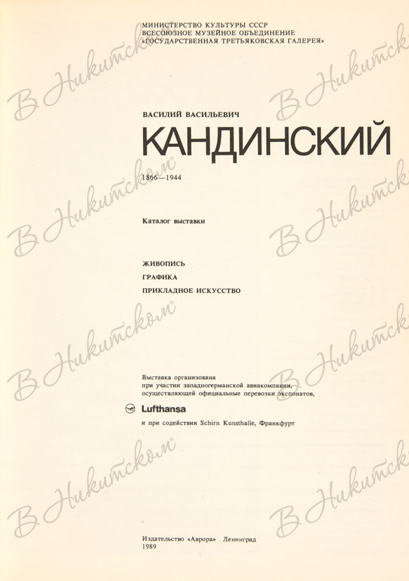 Василий Васильевич Кандинский. 1866-1944. Каталог выставки. Л.: Аврора, 1989.