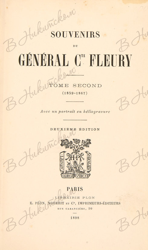 [Воспоминания о генерале Флери]. Souvenirs du general Cte Fleury. [В 2 т]. T. 1-2. Paris: E. Plon, Nourrit et Cie, 1897-1898.