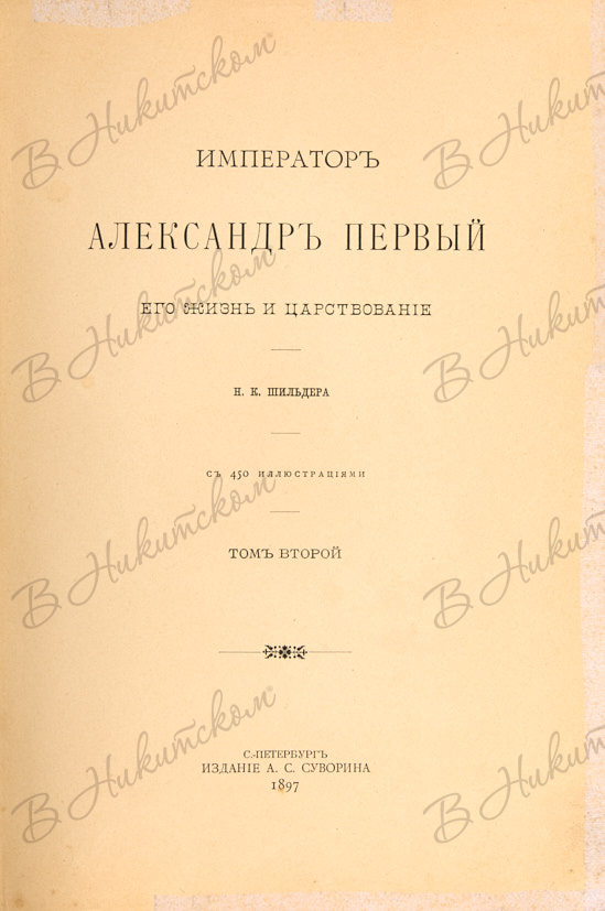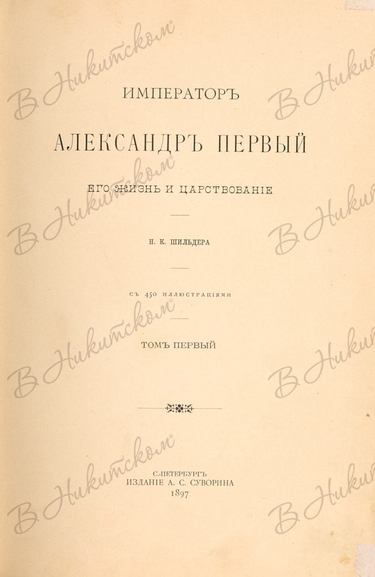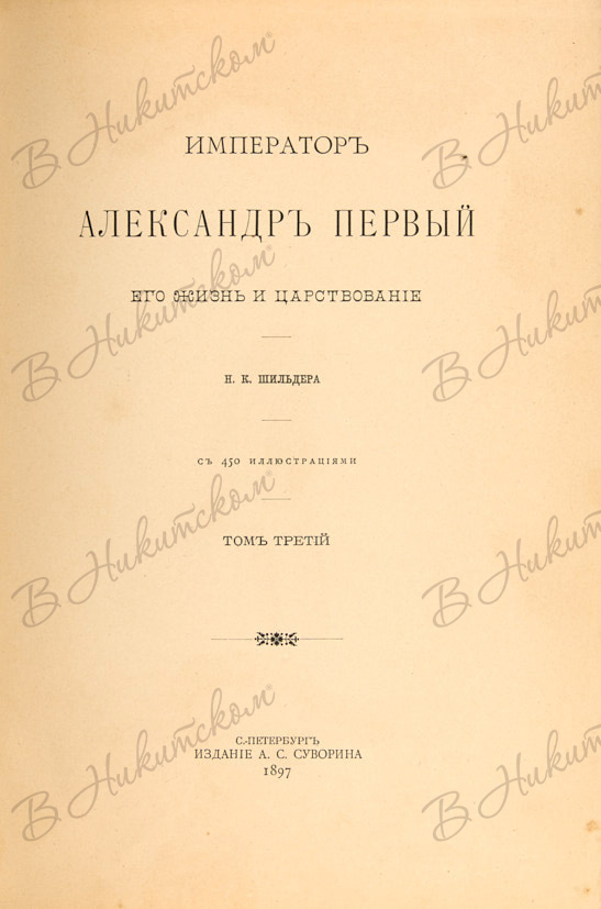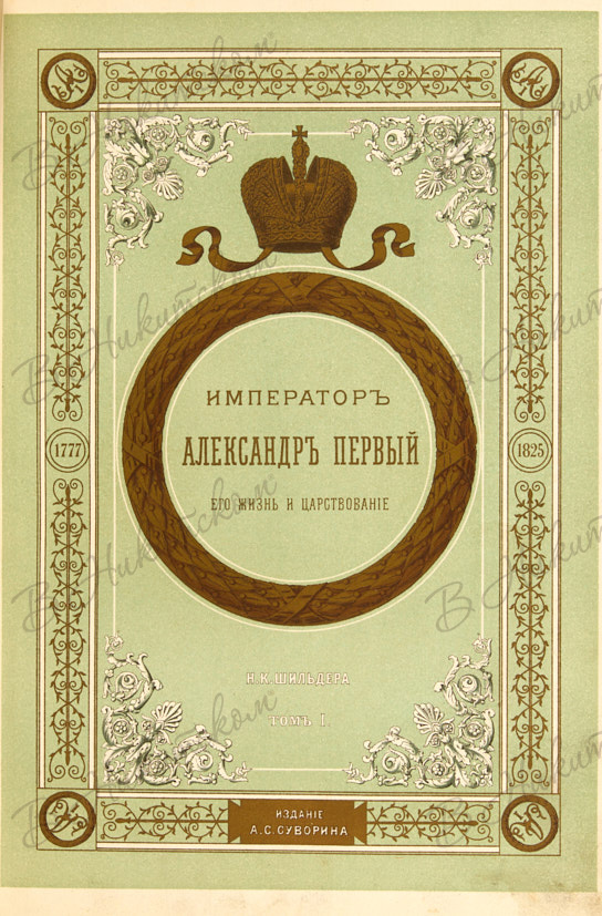 Шильдер, Н.К. Император Александр Первый, его жизнь и царствование. В 4 т. Т. 1-4. СПб.: Изд. А.С. Суворина, 1897-1898.