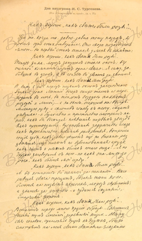 Полное собрание сочинений классика русской литературы Ивана Сергеевича Тургенева (1818-1883), вышедшее в качестве приложения к еженедельному журналу «Нива». В первом томе — гравированный портрет И.С. Тургенева и факсимиле рукописей двух произведений из цикла «Стихотворения в прозе».