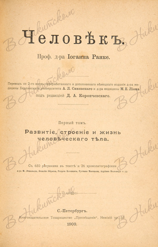 Т. 1: Развитие, строение и жизнь человеческого тела. XVI, 683 с., ил., 26 л. ил.