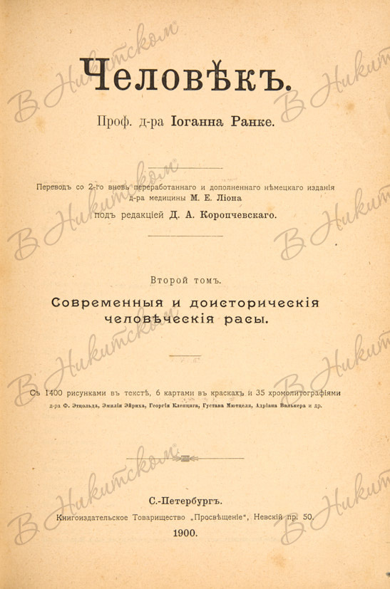 Т. 2: Современные и доисторические человеческие расы. XII, 758 с., ил., 15 л. ил., карт.