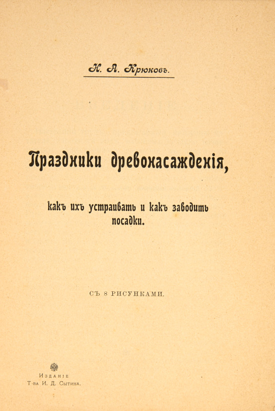 Крюков, Н.А. Праздники древонасаждения, как их устраивать и как заводить посадку. С 8 рисунками. М.: Типография Т-ва И.Д. Сытина, 1905.