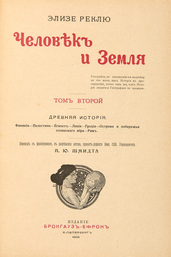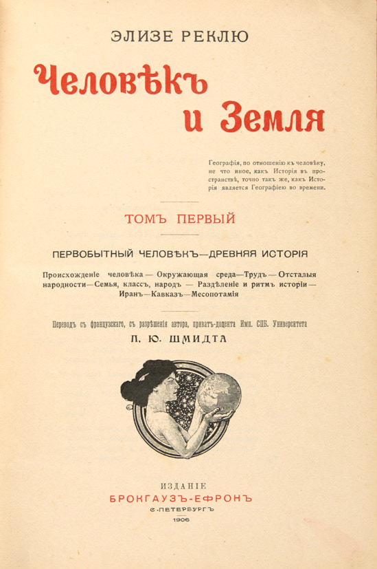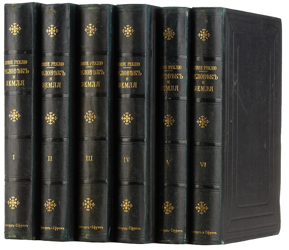 Реклю, Э. Человек и земля. В 6 т. Т. 1-6. СПб.: Изд. Брокгауз-Ефрон, 1906.