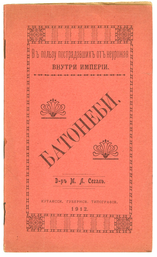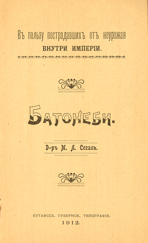 Д-р Сегаль, М.Л. Батонеби. Кутаиси: Кутаисская. Губернск. Типография, 1912.