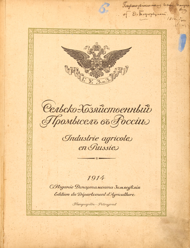Сельскохозяйственный промысел в России / Г.У.З. и З. Пг.: Изд. Департамента земледелия, 1914.