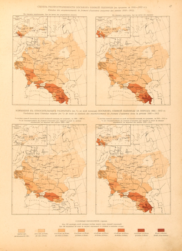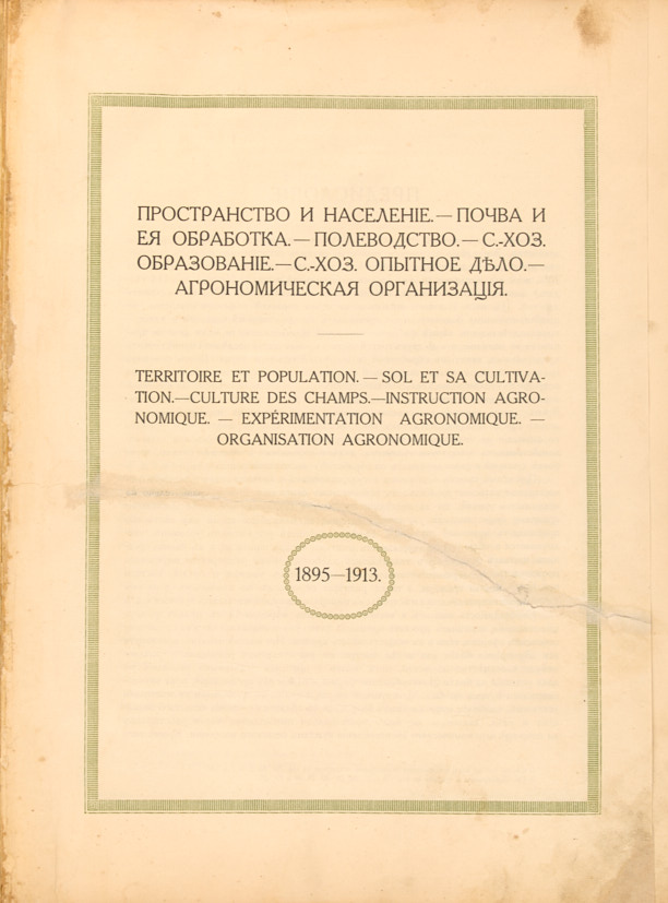 Великолепное издание, посвященное сельскохозяйственному промыслу в России в 1895-1913 гг. Книга включает географические карты, графики, рисунки с пояснительным текстом, обзор сельскохозяйственных мероприятий по распространению сельскохозяйственных знаний, развитию сельскохозяйственного опытного дела, по вопросам агрономической организации, по улучшению земледельческой техники и т.д. Приведены общие статистические сведения о сельском хозяйстве в России. Многие фотографии представлены для издания Этнографическим отделом Музея императора Александра III.