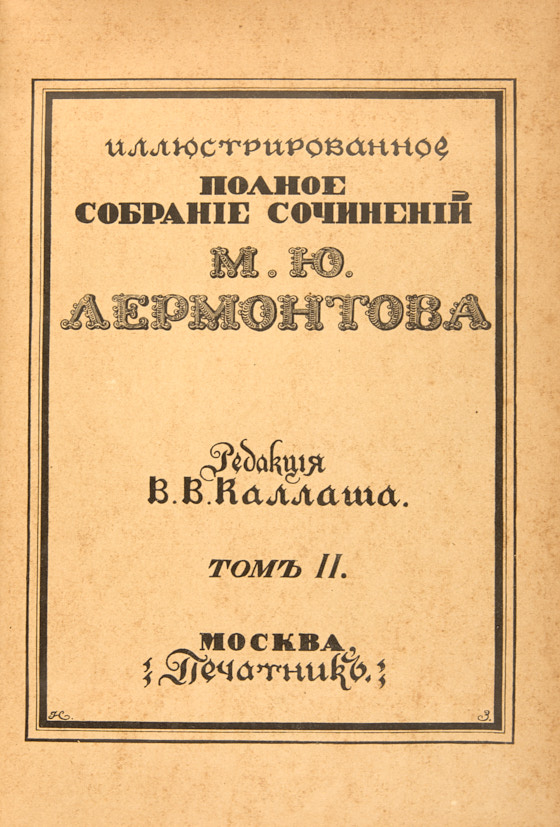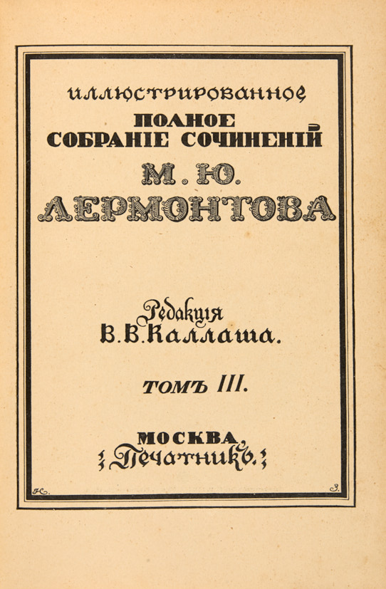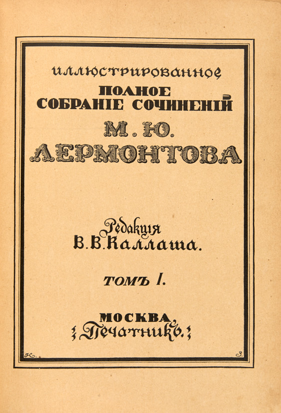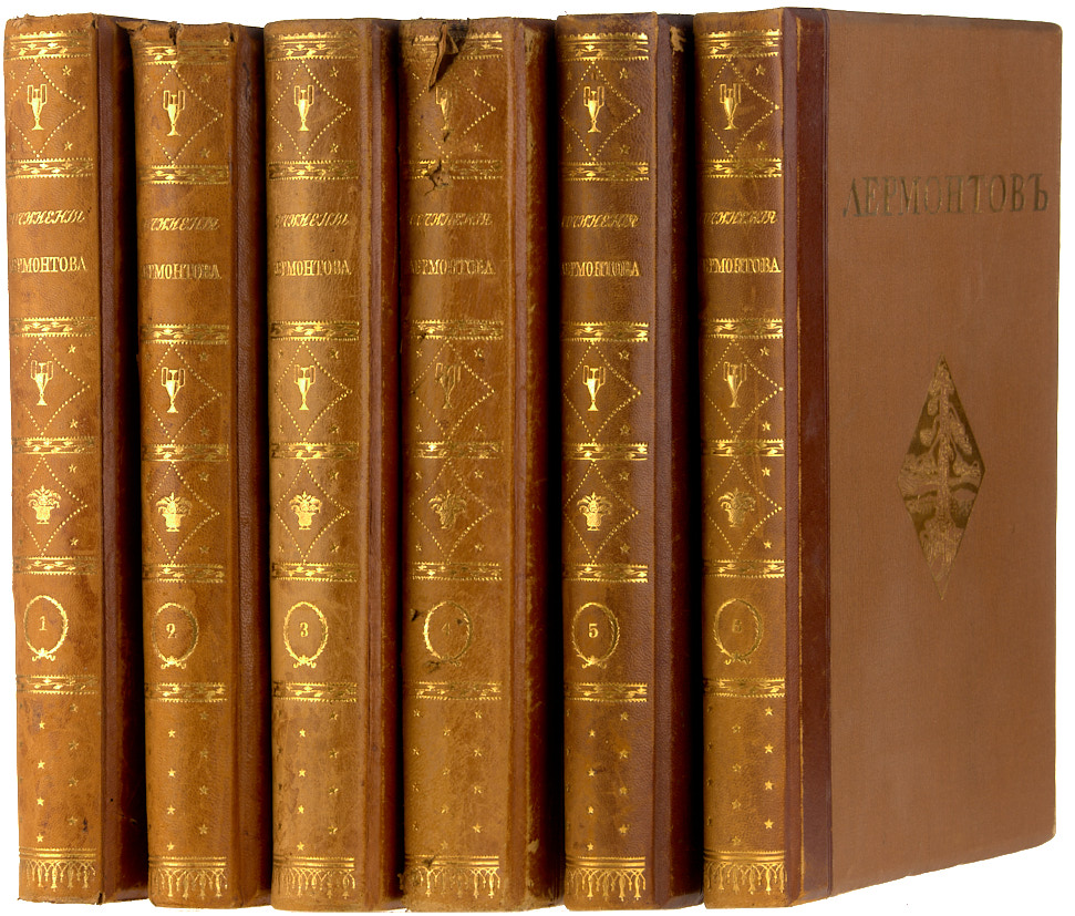 Лермонтов, М. Ю. Иллюстрированное полное собрание сочинений М. Ю. Лермонтова. В 6 т. Т.1-6. М.: Изд. Печатник, Типо-литография Т.-ва И.Н. Кушнерев и Ко, 1914-1915.