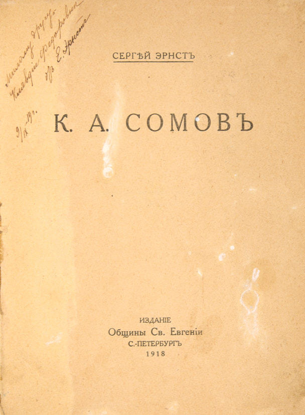 Эрнст, С.Р. К.А. Сомов / обл. по рис. С.В. Чехонина, книжные украшения К.А. Сомова. СПб.: Изд. Общины св. Евгении, 1918.