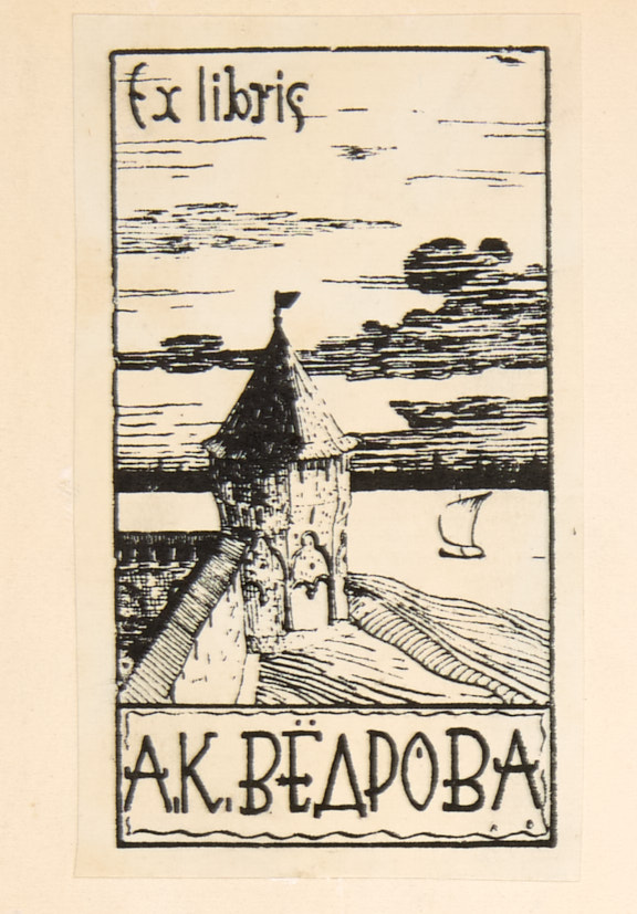 111, [4] с., ил., 16 л. ил. 20 х 16 см. Во владельческом составном переплете. Фрагмент издательской обложки наклеен на переднюю крышку. На форзаце 1а бумажный экслибрис А.К. Кедрова. Следы от бумаги на титуле, частично титул склеился с иллюстрацией, первая иллюстрация дублирована, последняя страница склеилась с форзацем. Блок распадается. Поверх одной иллюстрации наклеена открытка 1930 г. с репродукцией картины К.А. Сомова «Купанье». На титуле владельческая надпись орешковыми чернилами: «Милому другу / Клавдии Федоровне / от Е. Эрнста / 9/IX-19 г.».