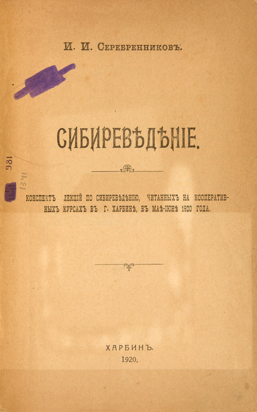 Серебреников, И.И. Сибиреведение. Конспект лекций по сибиреведению, читанных на кооперативных курсах в г. Харбине в мае-июне 1920 года. Харбин, 1920.
