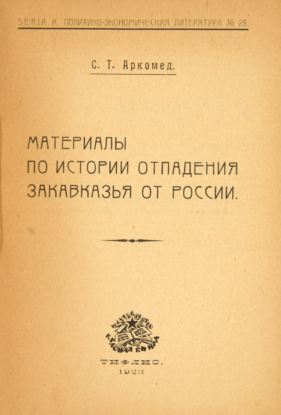 Материалы по истории отпадения Закавказья от России. Тифлис: Издательство «Красная книга», 1923.