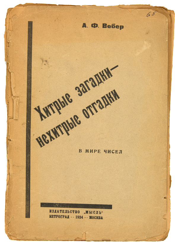 Вебер, А.Ф. Хитрые загадки – нехитрые отгадки. В мире чисел. Пг.; М.: Издательство «Мысль», 1924.