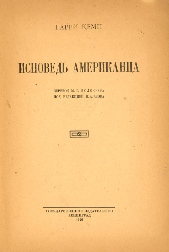 Кемп, Г. Исповедь американца. Л.: Государственное издательство, 1926.