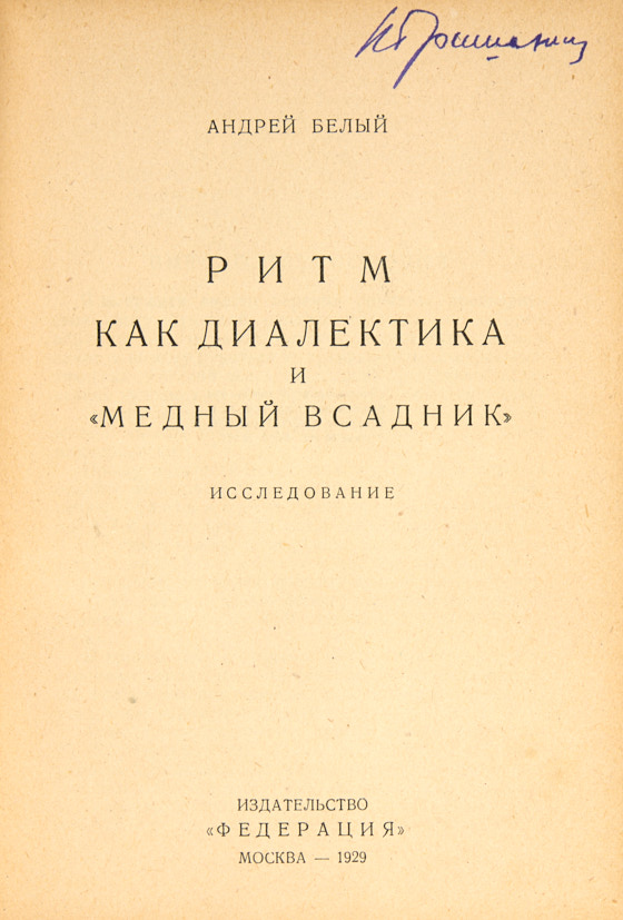 Белый, А. Ритм как диалектика. М.: «Федерация», 1929.