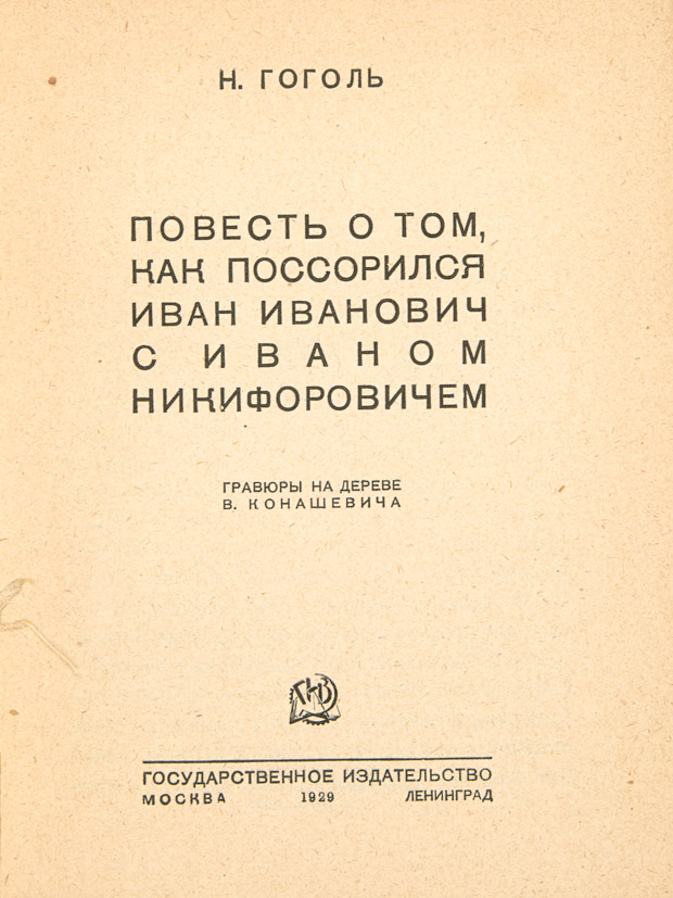 [Гравюры В. Конашевича]. Гоголь, Н.В. Повесть о том, как поссорился Иван Иванович с Иваном Никифоровичем. М.-Л.: Гос. изд-во, 1929.