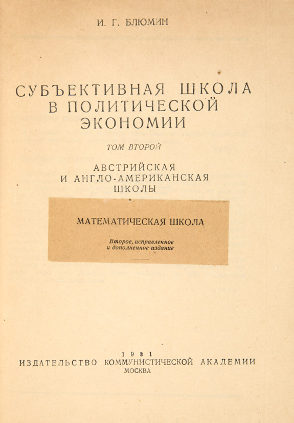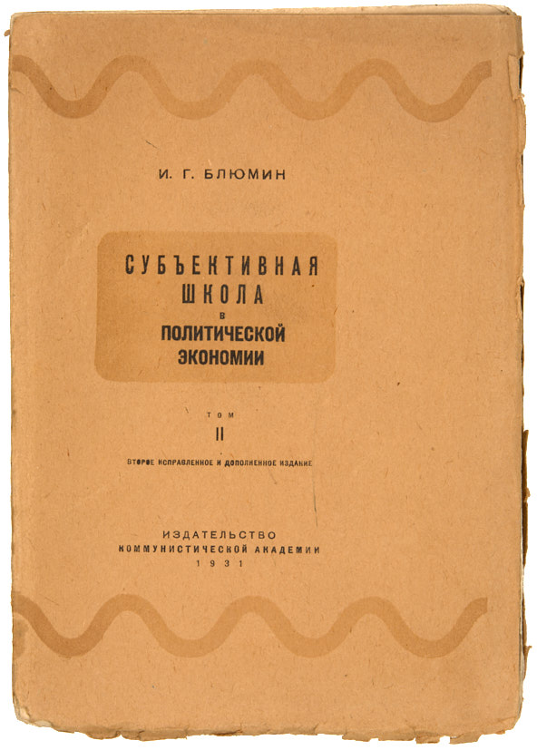 Блюмин, И.Г. Субъективная школа в политической экономии. Т. 2. 2-е исправл. и дополн. изд. М.: Издательство Коммунистической Академии, 1931.
