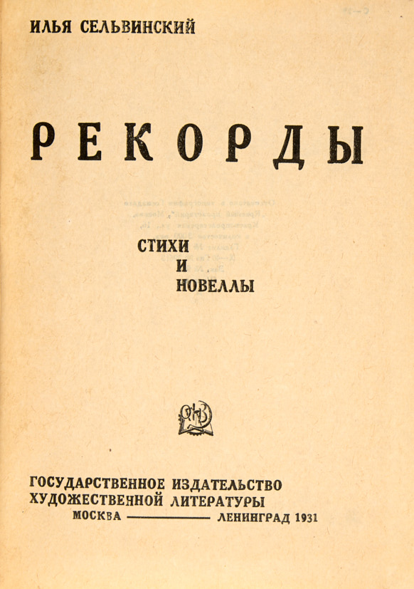 Сельвинский, И. Рекорды. Стихи и новеллы. М.; Л.: ГИХЛ, 1931.