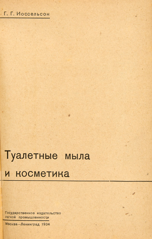 Иоссельсон, Г.Г. Туалетные мыла и косметика. М.; Л.: Гос. изд. лёгкой промышленности, 1934.
