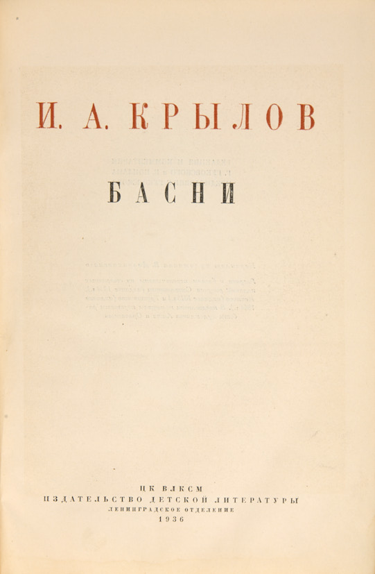Крылов, И.А. Басни / ред. и комментарий Г. Гуковского и Б. Коплана; предисл. Г. Гуковского. Л.: ДЕТИЗДАТ, 1936.
