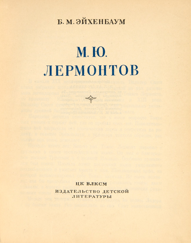 Эйхенбаум, Б.М. М.Ю. Лермонтов / подбор илл. И.Л. Андронникова. М.; Л.: ДЕТИЗДАТ, 1936.