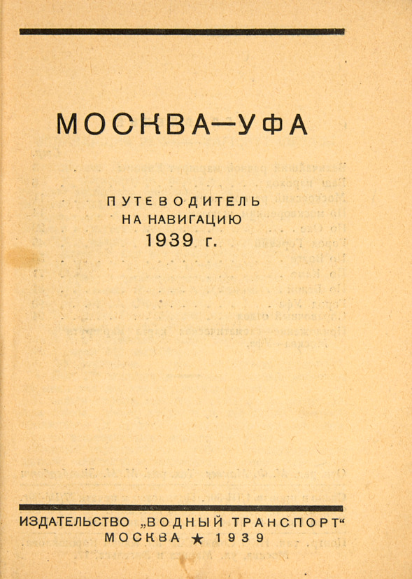 Москва – Уфа. Путеводитель на навигацию 1939 г. М.: Издательство «Водный транспорт», 1939.